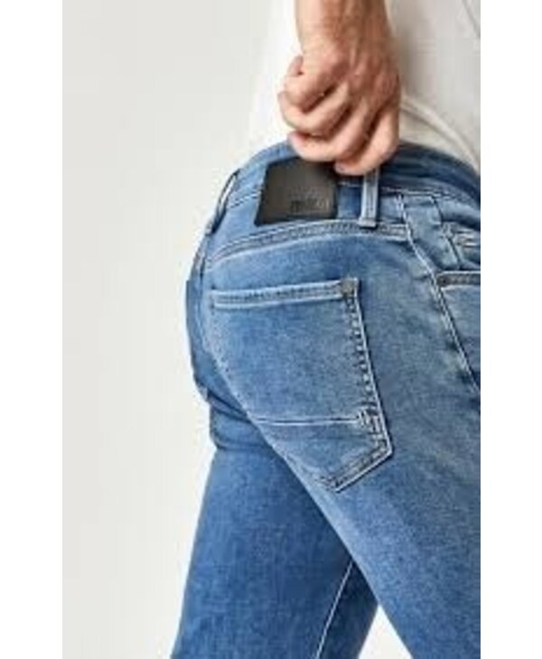 Designed with a comfortable regular rise, Jake has a modern shape that fits slim through the hip, thigh, and leg opening. This pair is made from our Sporty fabric which is soft, stretchy and incredibly comfortable denim. These have an all-over blue wash with distressing for a subtly lived-in look.