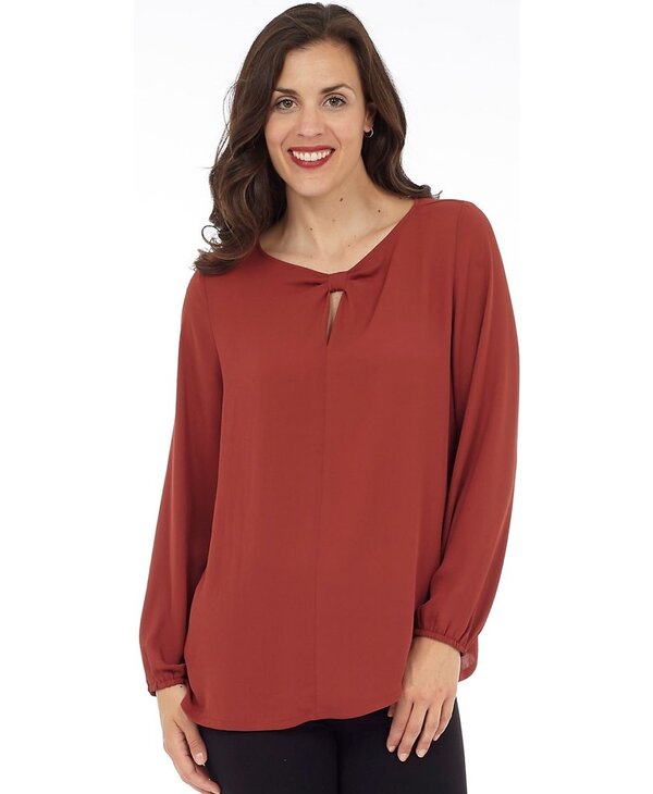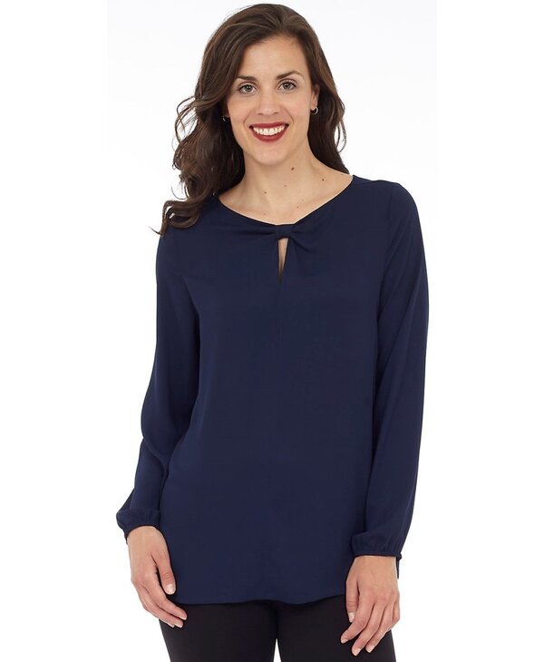 Long Sleeve Top with Bow Detail at the Front Neck and Back Neck Keyhole