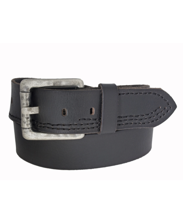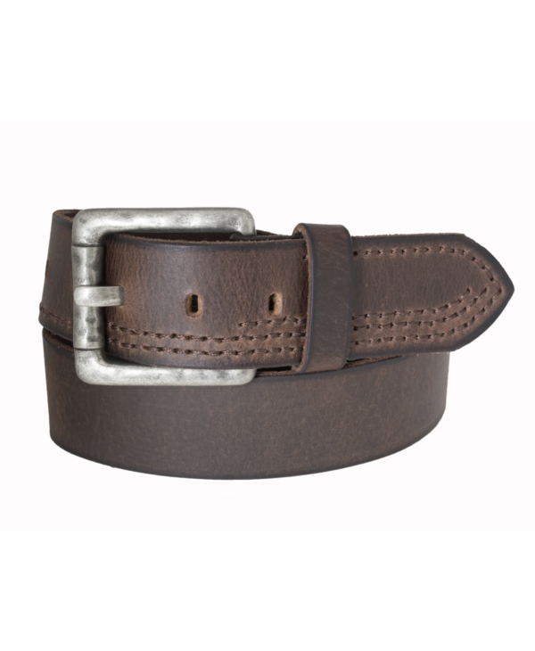 Silver Jeans Belt - Style S300 : 40MM Men's Genuine Leather Belt With Stitch Detail And Antique Nickel Finish Hammered Look Harness Buckle